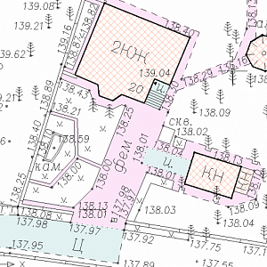 Все объекты, расположенные на выбранном участке, подлежат обязательному учёту. В план включается не только природный (или техногенный) рельеф местности, но и контуры коммуникаций (подземных и расположенных на поверхности), построек, дорог, троп, зелёных насаждений, отдельно растущих деревьев, стабильных ограждений.